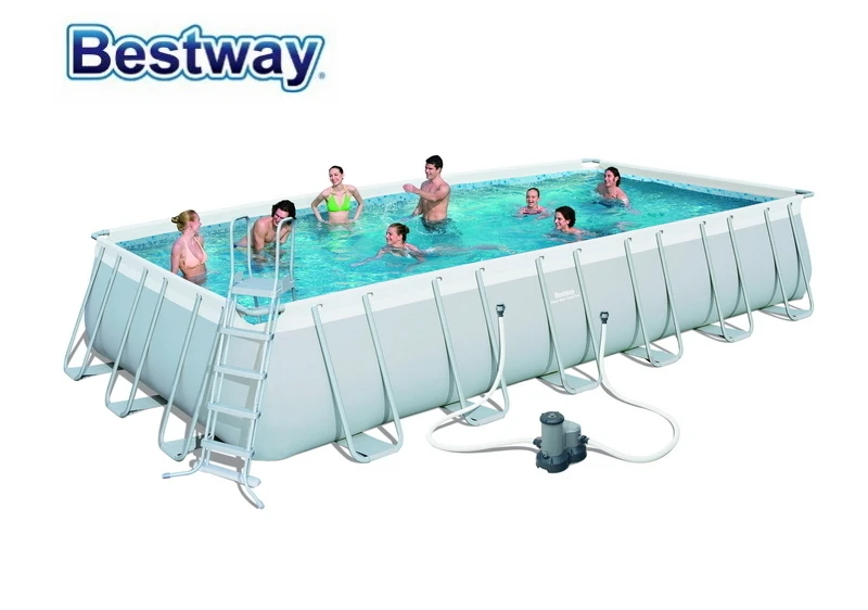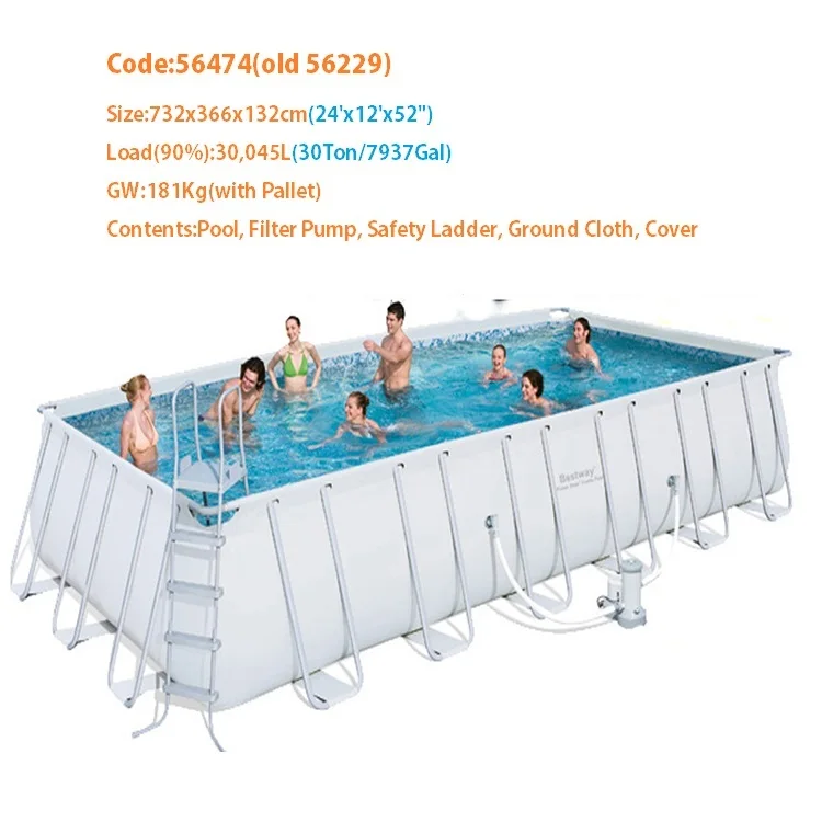 BEST QUALITY 56474 Bestway 732x366x132cm Power Steel Rectangular Frame Pool Set (FilterLadderCoverMat) 24'x12'x5