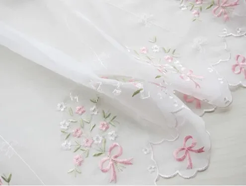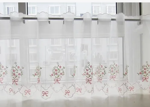 Korean pink bow coffee curtain gauze curtain lace short semi pastoral small floating curtain