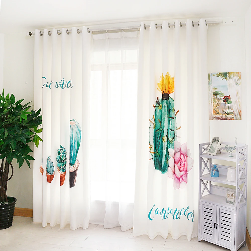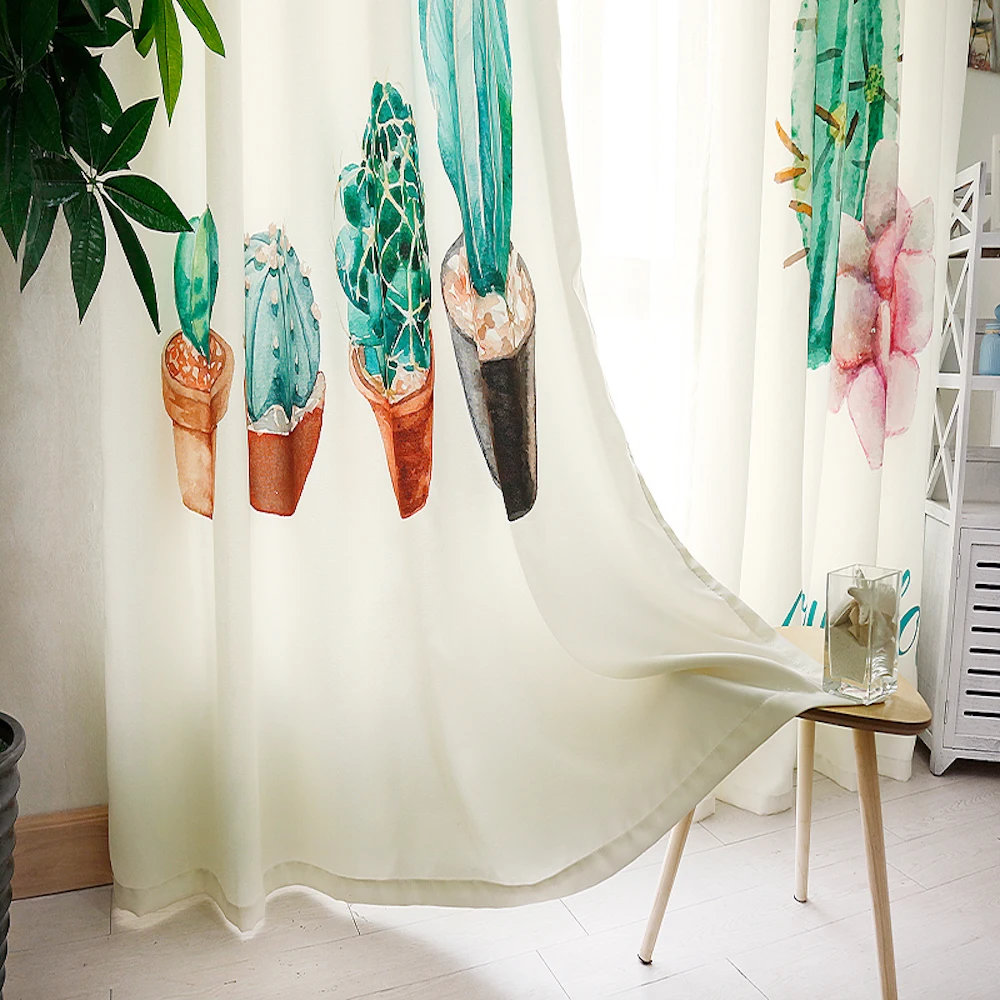 Best Quality Custom Made 2x Grommet Window Drapery Curtain Living Room Window Dressing Tulle 200x260cm Cactus Gr