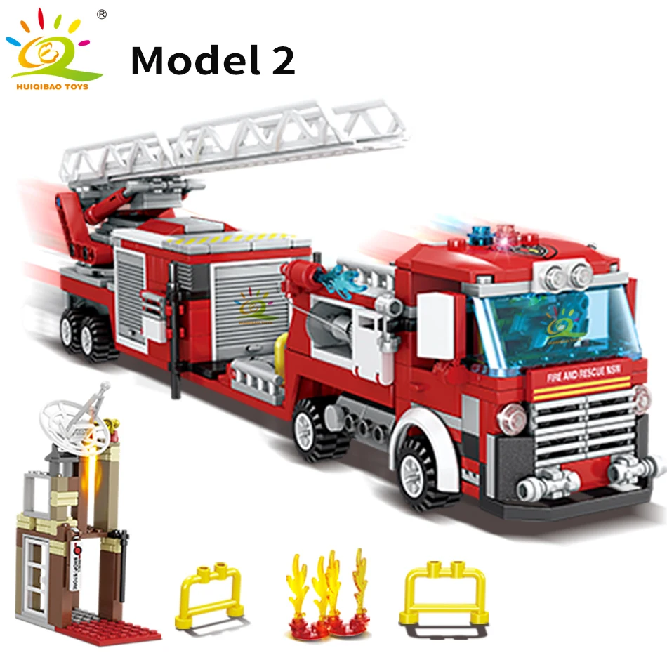 Best Seller 491pcs Fire Ladder Truck Model Building Blocks legoingly City Fireman 2 Figures car Bricks DIY Cons