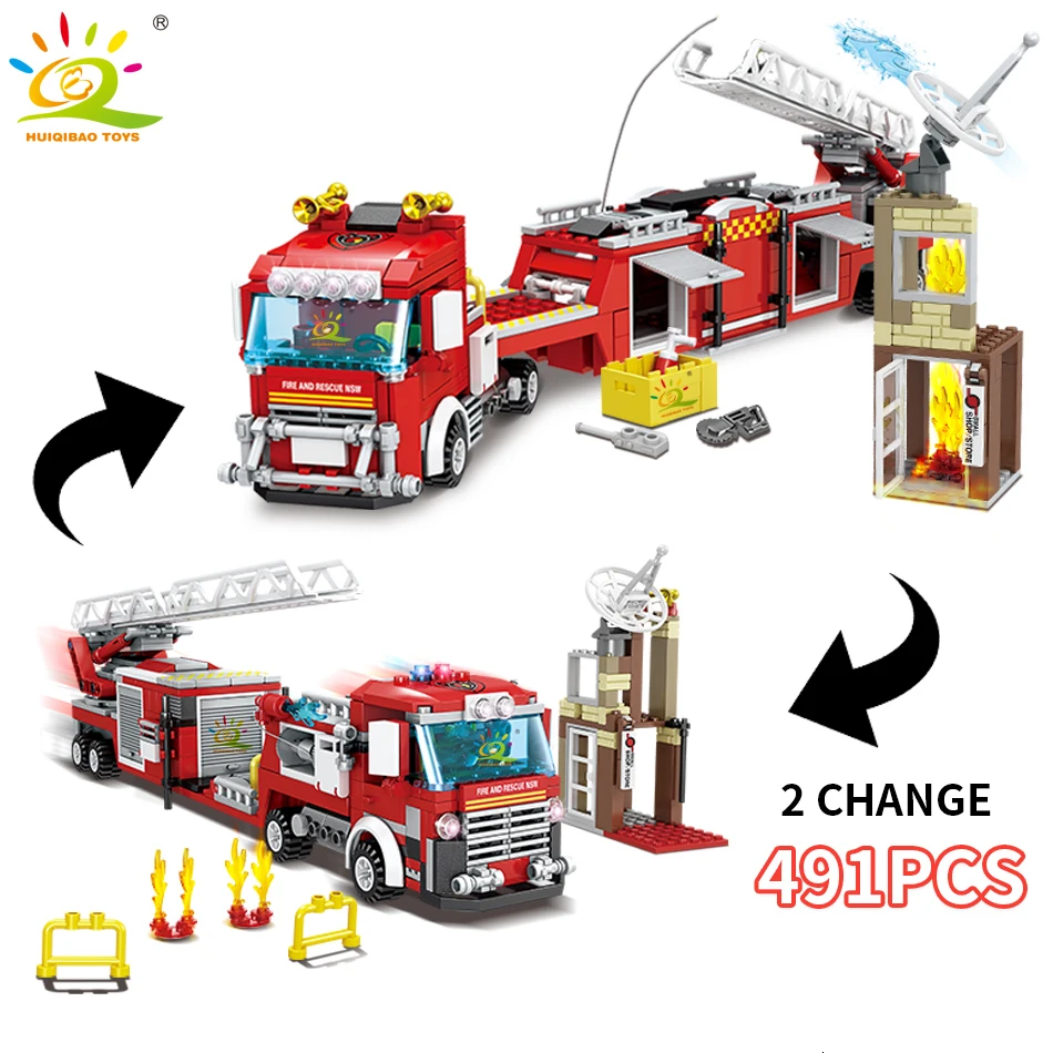491pcs Fire Ladder Truck Model Building Blocks legoingly City Fireman 2 Figures car Bricks DIY Cons