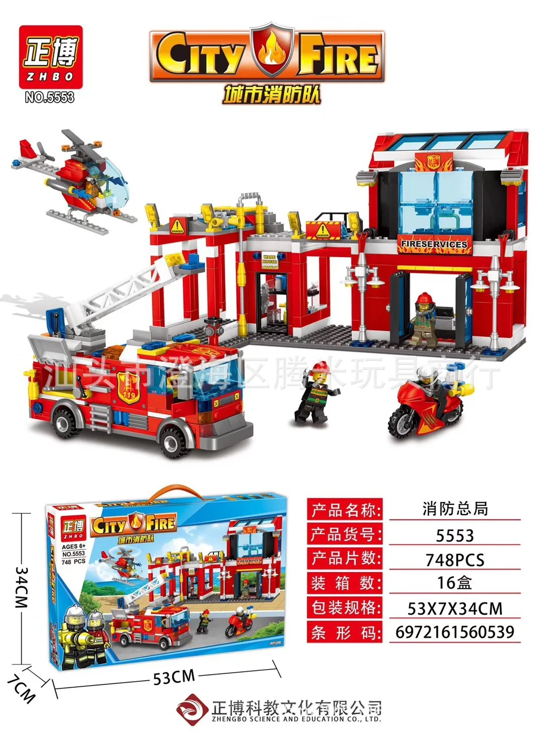 HIGH QUALITY Masahiro 5553 City Series Firefighting Administration Fire Truck Ladder Children'S Educational Inse