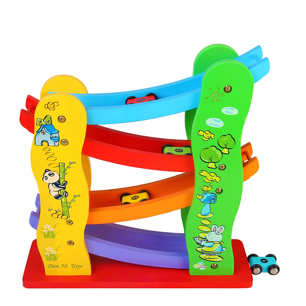 Baby Kids Colorful Wooden Ladder Gliding Car Wood Track Car Toys Educational Model to Slide Toy Chi
