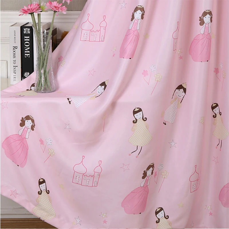 HOT Sale Pink Princess Blackout Curtains For Children Room Baby Girl Living Room Bedroom Cortina Para Quarto