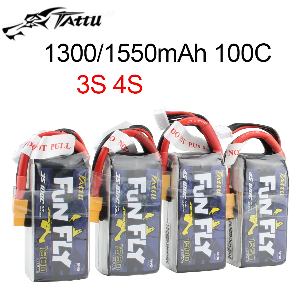 TATTU FUNFLY 1300mAh 1550mAh 3S 4S 11.1V 14.8V 100C Lipo Battery with XT60 Plug for FPV 250 230 210