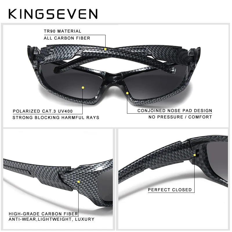 HOT Sale KINGSEVEN Brand Polarized Sunglasses Men Goggles Carbon Fiber Frame TR90 Material Fishing Driving E